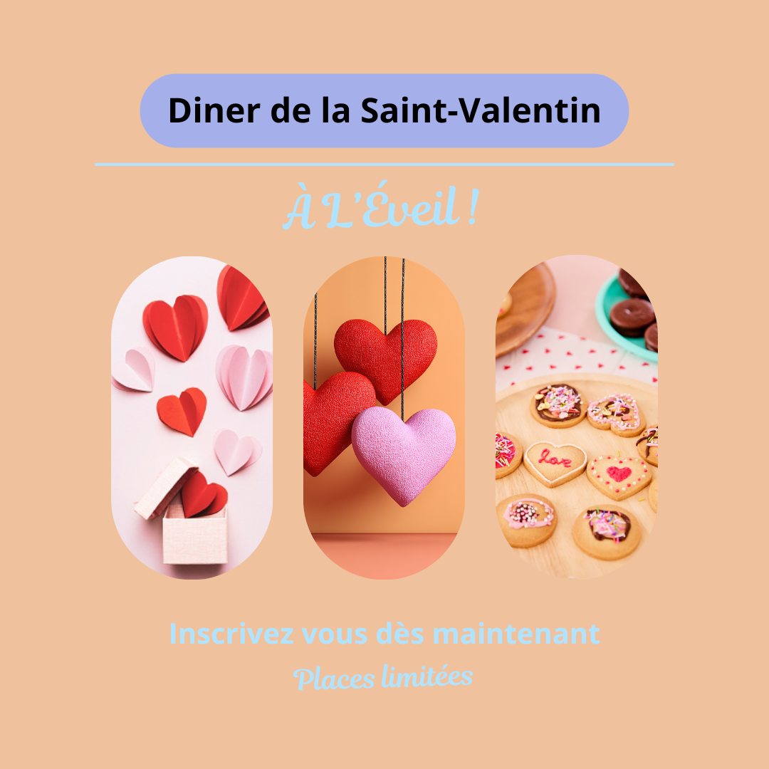 Envie d’un moment chaleureux et convivial ? L’Éveil vous invite à partager un dîner thématique de la Saint-Valentin.