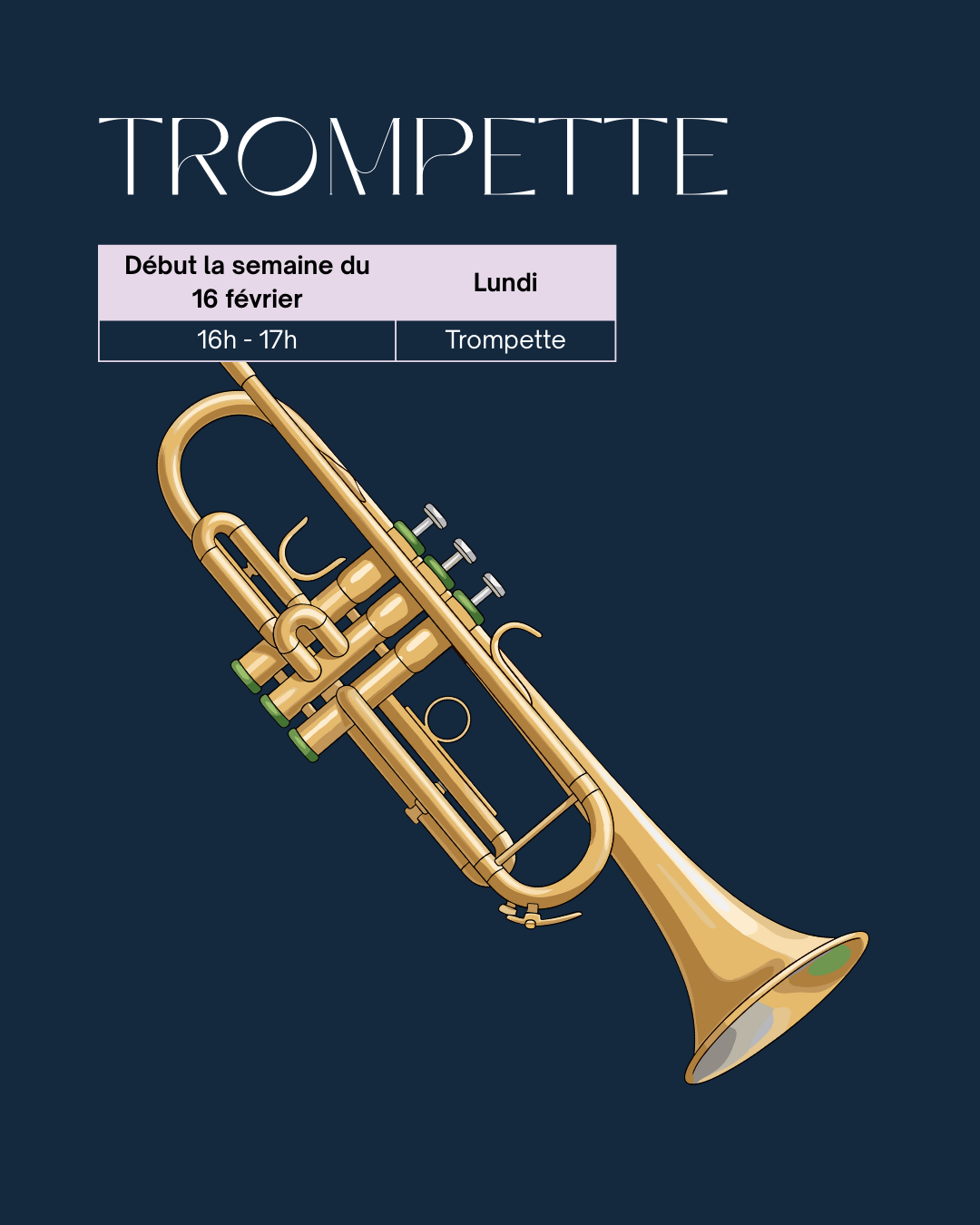 HORAIRE DE LA SESSION DE TROMPETTE