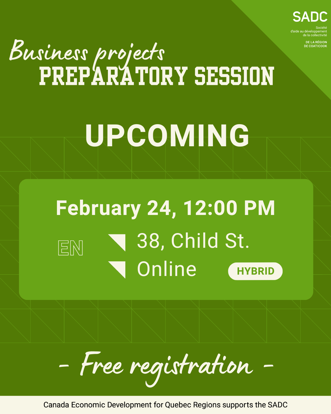***CET ÉVÉNEMENT EST EN ANGLAIS*** Bienvenue aux séances préparatoires offertes par la SADC pour initier la collectivité de la région de Coaticook à l’entrepreneuriat! Vous avez un nouveau projet d’affaires en tête? Assistez dès maintenant [...]