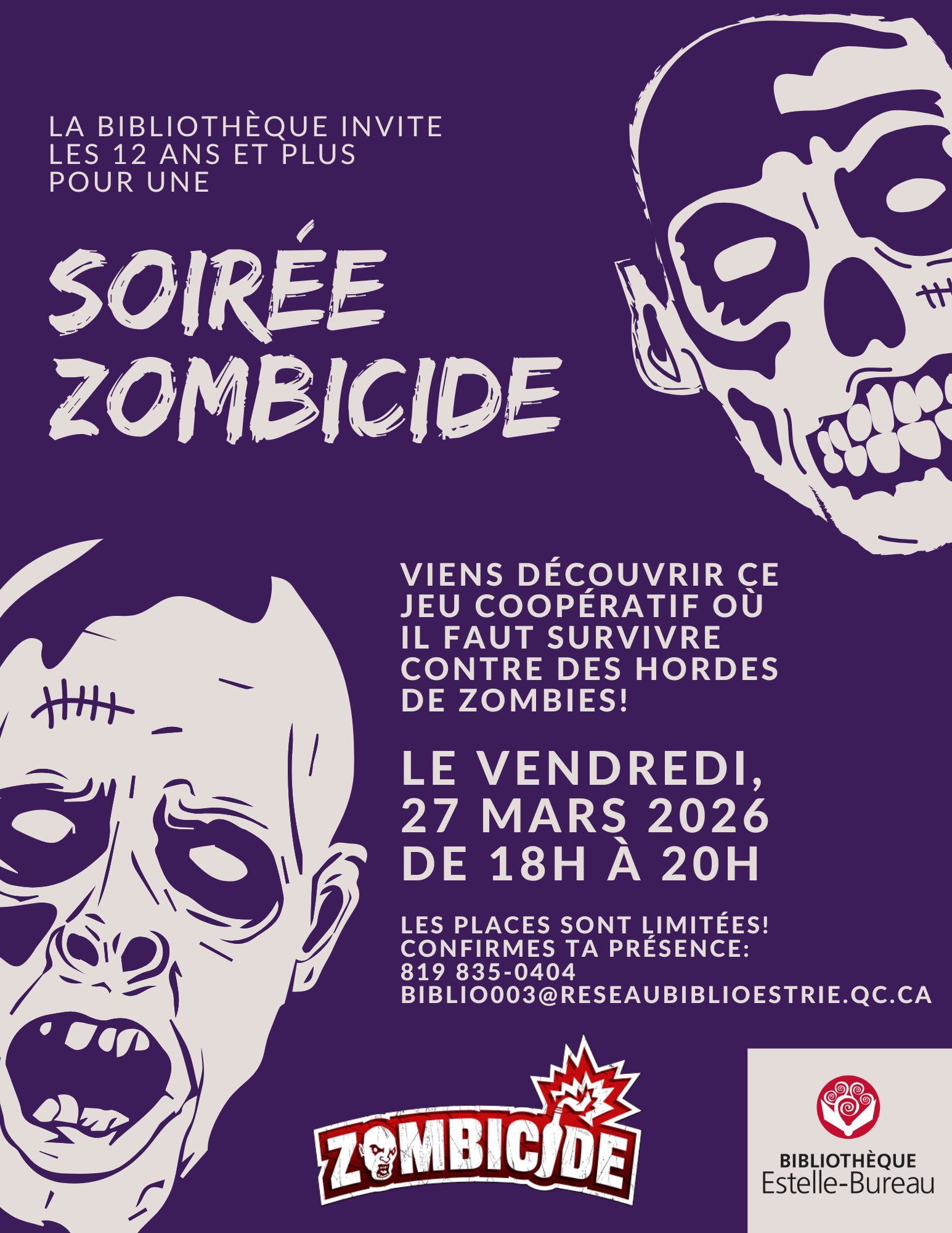 Bibliothèque Estelle-Bureau de Compton 29 chemin de Hatley,Compton,Québec,CanadaVenez passer un après-midi en bonne compagnie! Amenez vos jeux préférés ou venez découvrir nos jeux sur place. Il y aura un bar à chocolat chaud pour les gourmands. Confirmez votre présence en nous contactant [...]